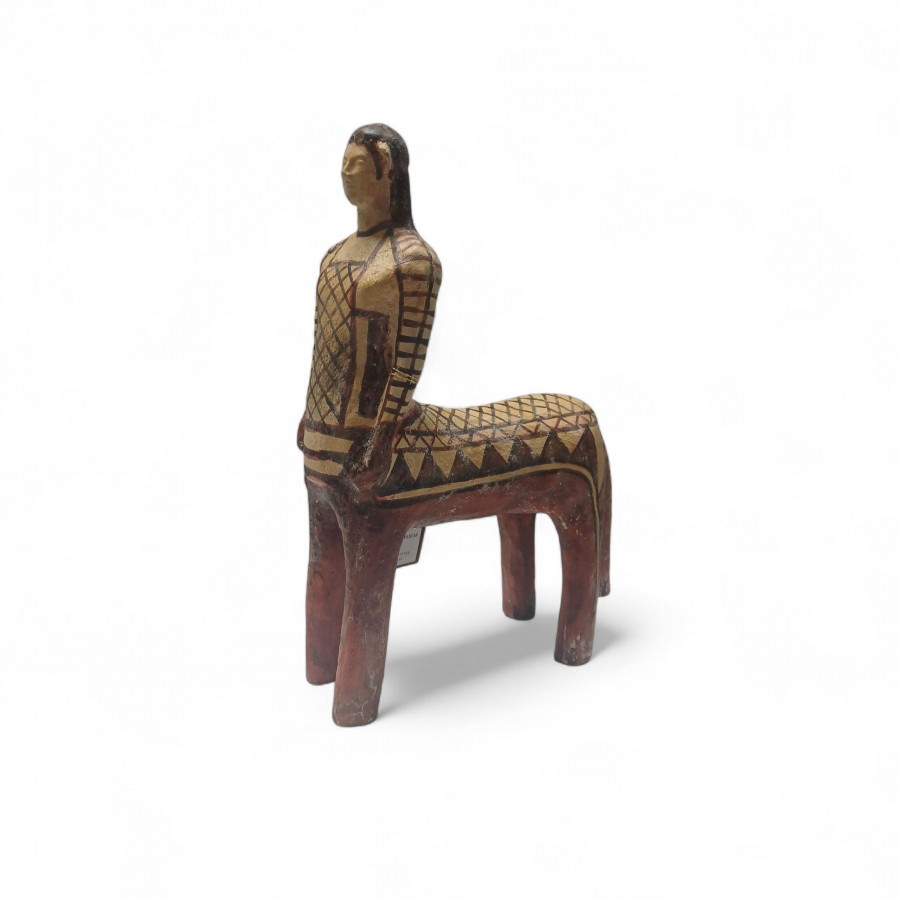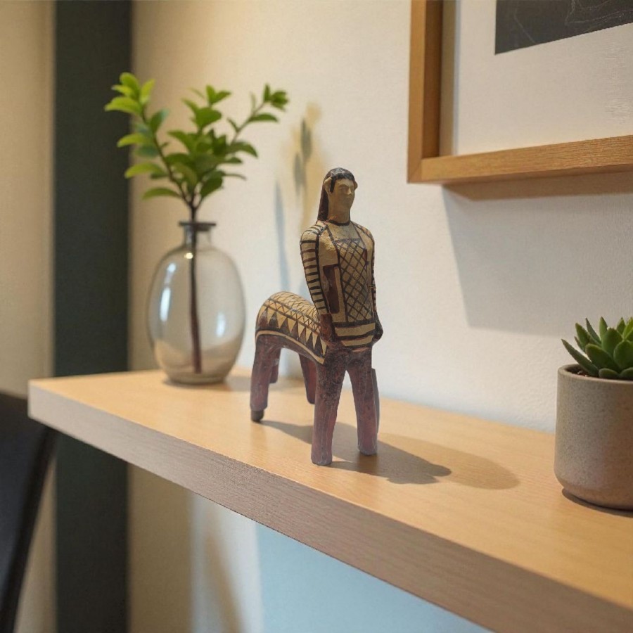 In Greek mythology, Centaurs were creatures with the upper body of a human and the lower body of a horse. They symbolized the tension between instinct and civilization and were often associated with strength, wild nature, and great wisdom. Geometric-period Centaur figurines are among the earliest mythological representations in ancient Greek art.