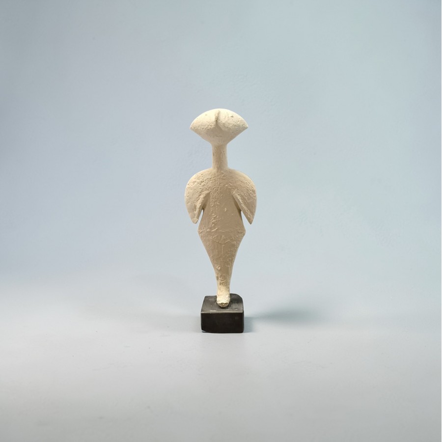 The origins of this design date back to the Chalcolithic period (approx. 4500-3500 BC). Predating the classical Cycladic style, it shares the same spirit of abstraction and elegance. Archeologists often interpret the "stargazing" pose as a gesture of worship, prayer, or a deep spiritual connection to the cosmos and the celestial world.